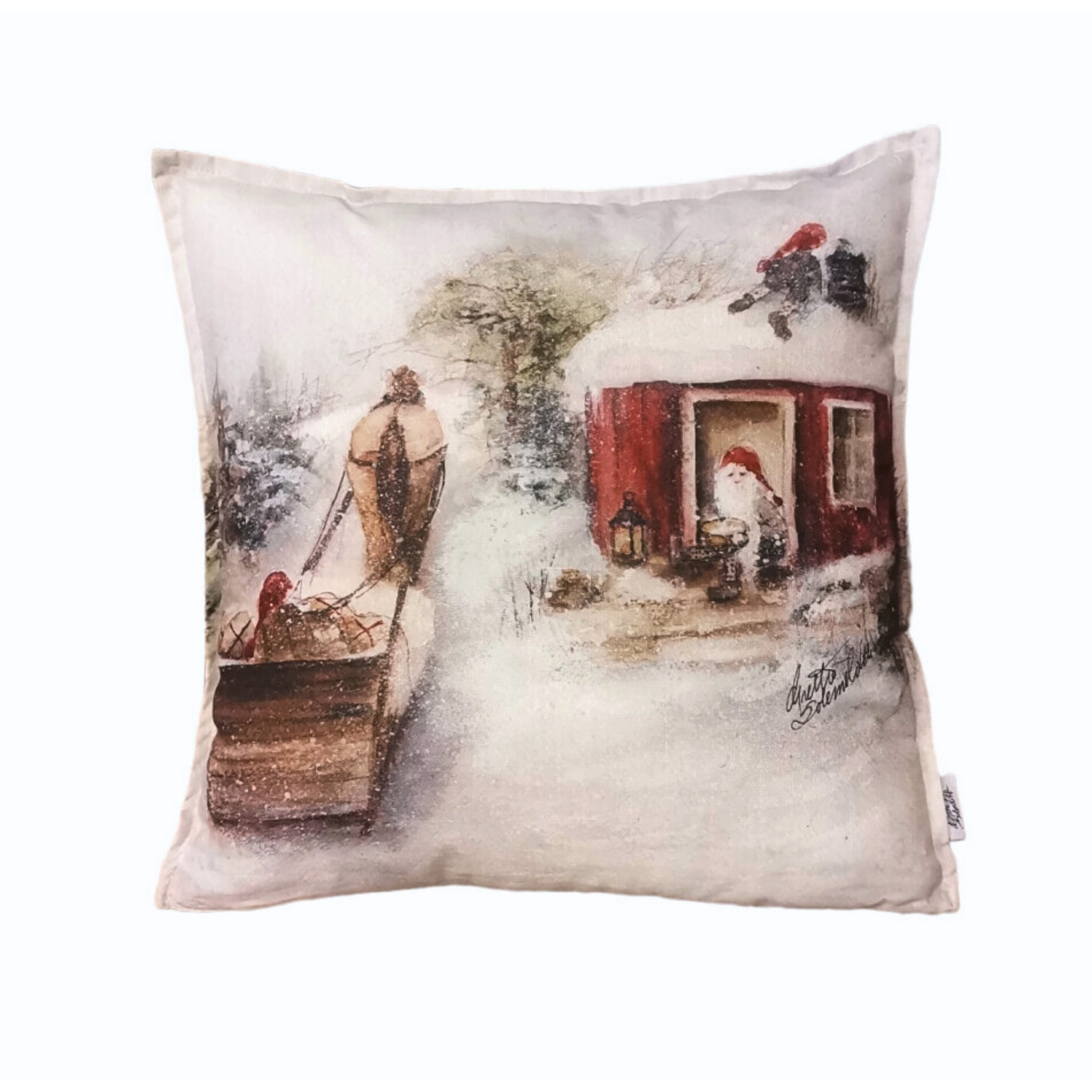 Motivet på puten fanger essensen av gammel nissen i all dens sjarm og visdom. Nissen er nøye utformet for å formidle historien om hundre juler, med detaljer som skaper et øyeblikksbilde av en tid da julen var et eventyr, og nisser var de hemmelige vokterne av gleden.